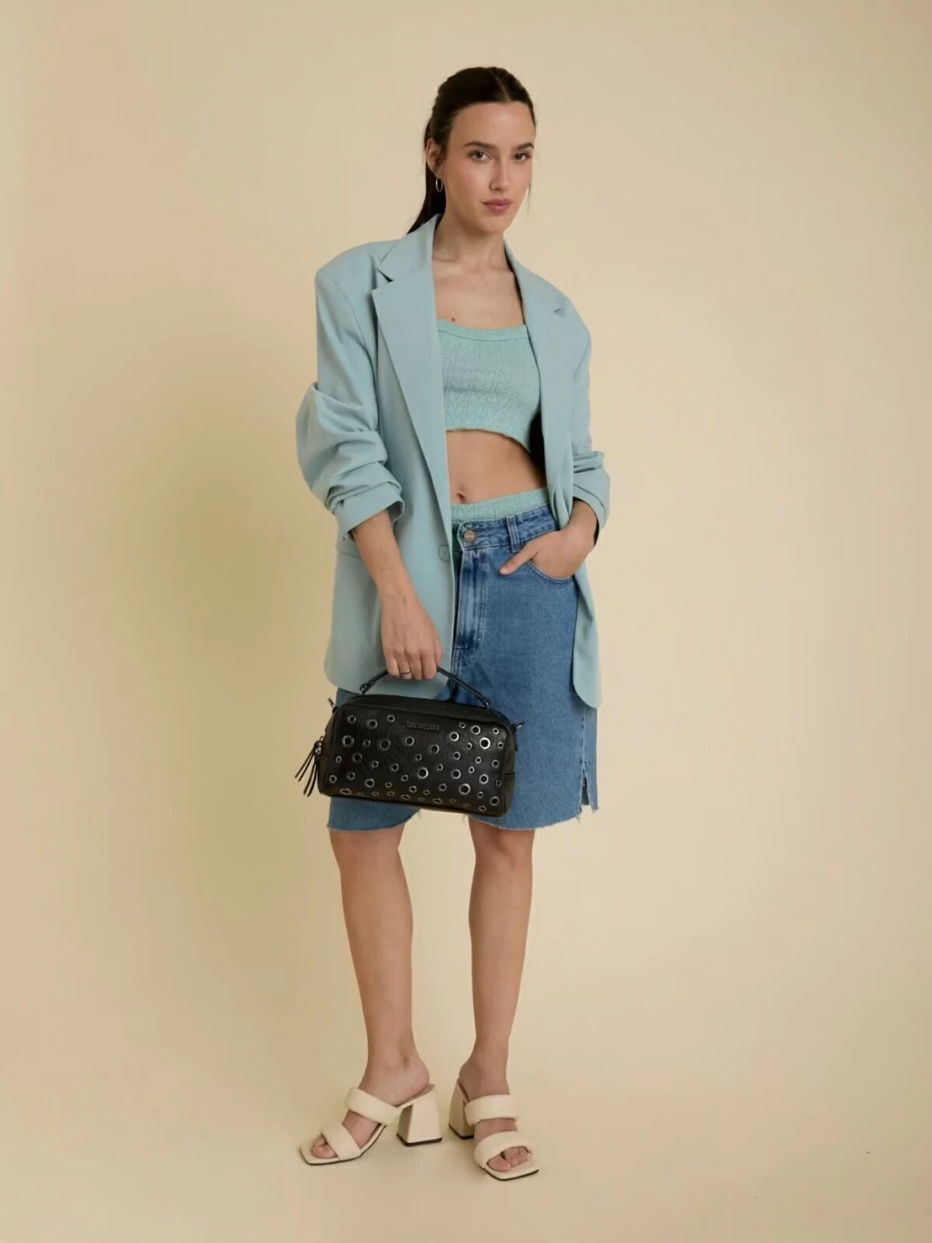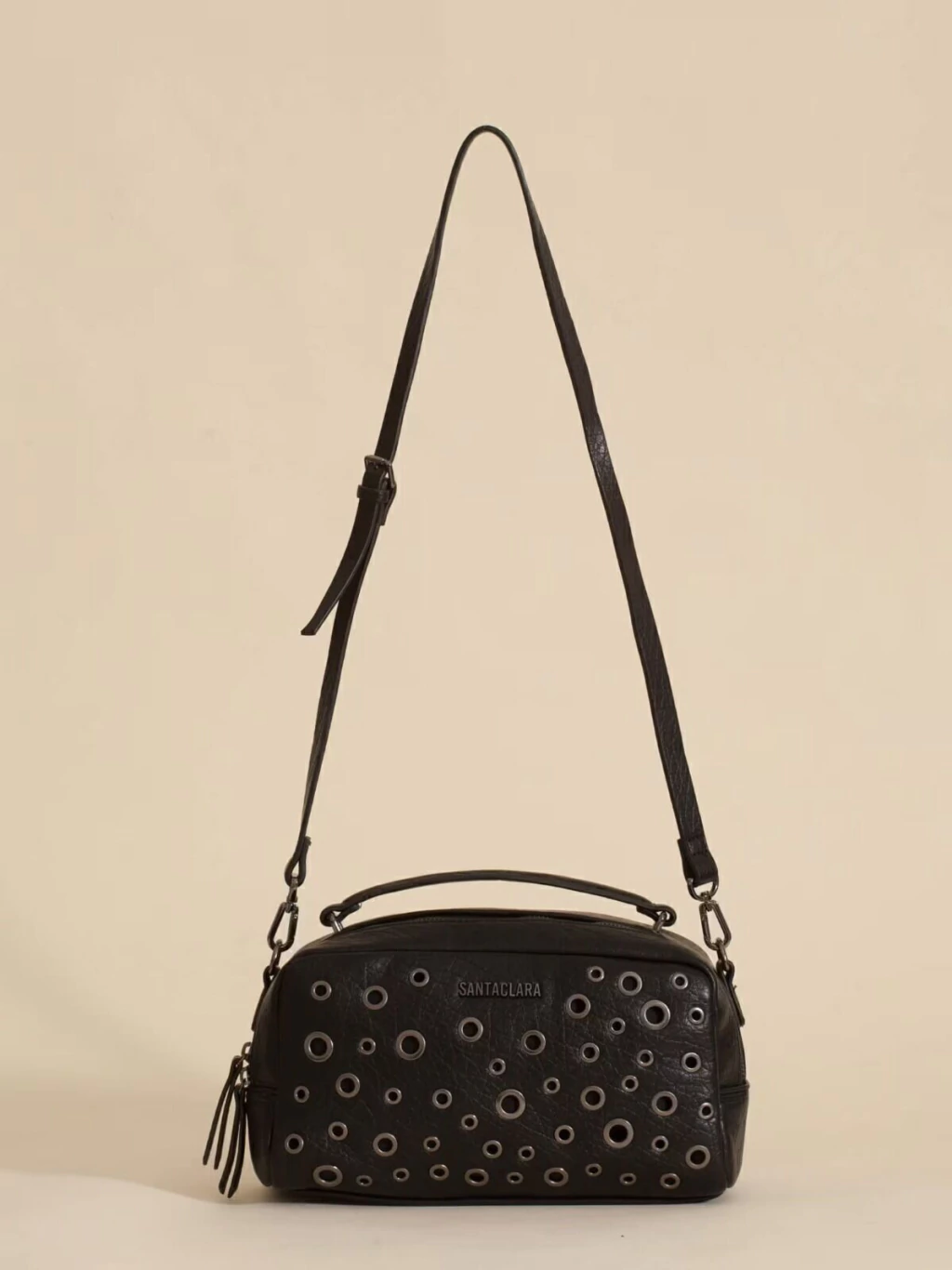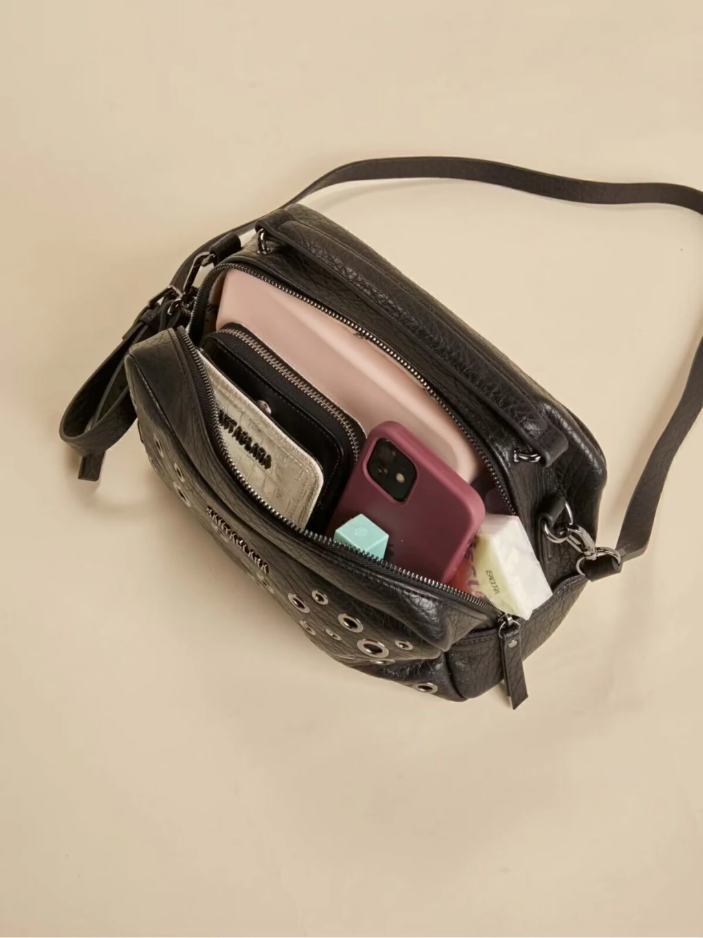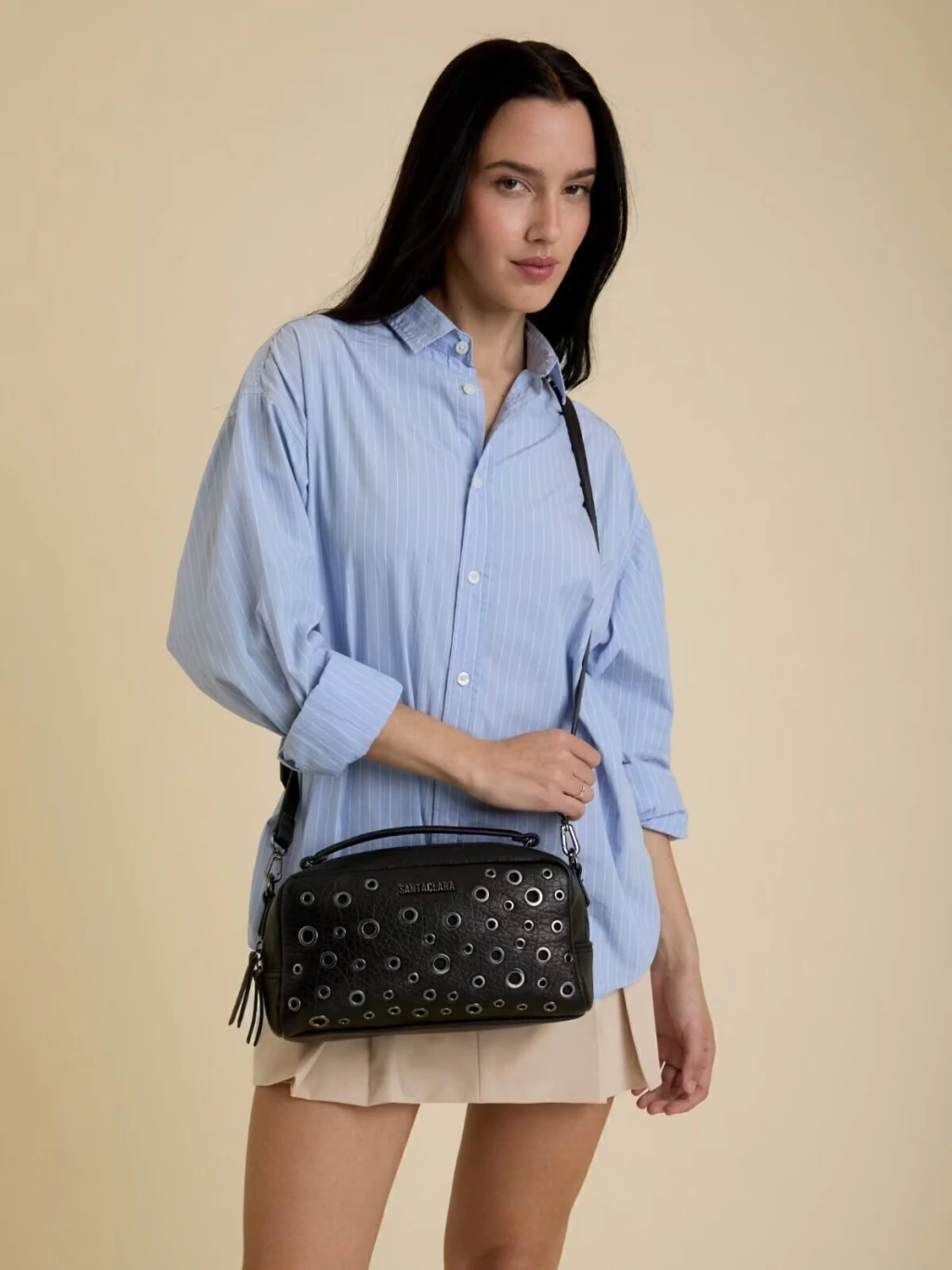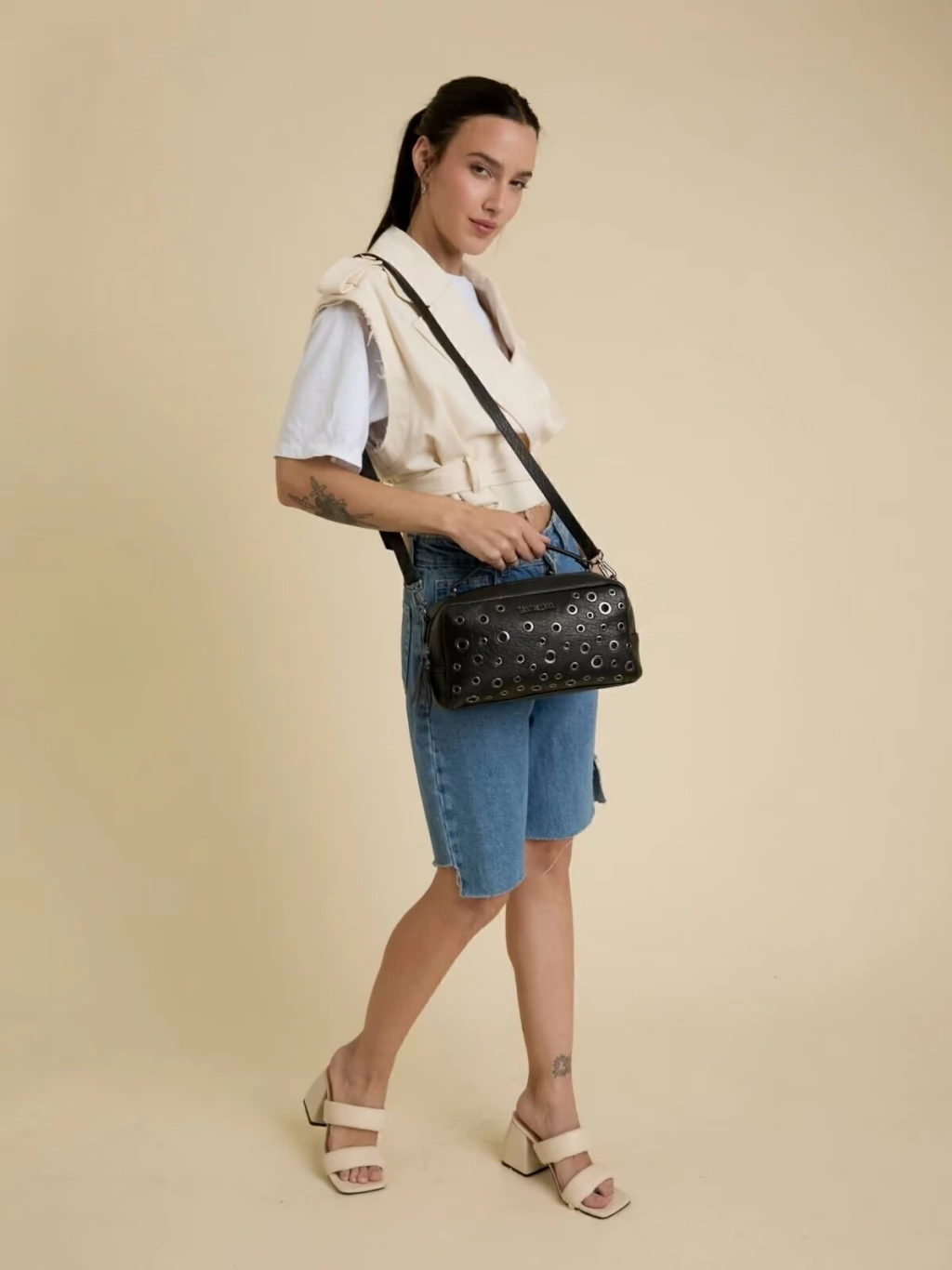 La bandolera Brava es uno de esos: fuerte, canchera, con detalles de ojalillos que hacen que hasta el look más simple se vea distinto. Es esa cartera que mirás y decís “listo, esta soy yo”.
