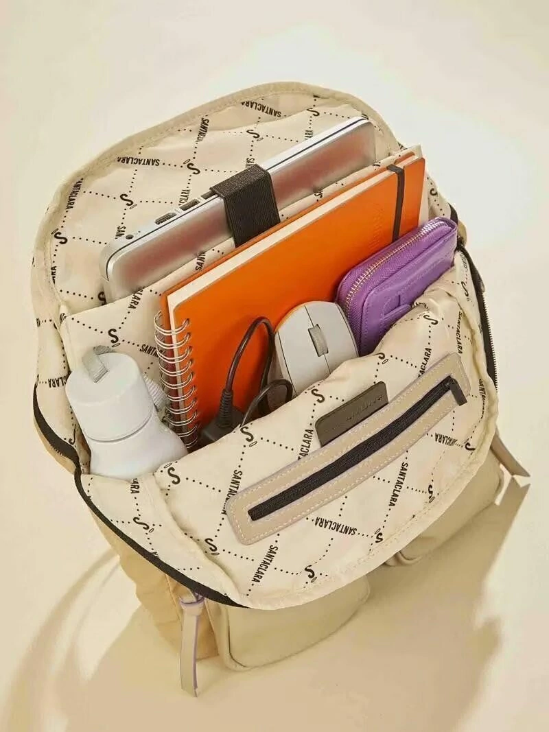 Todas nuestras Santaclaras son 100% cruelty free porque están confeccionadas con materiales alternativos al cuero animal, ¡nos importa que así sea! Hoy te toca descubrir la mochila Catalina. Es una Santaclara todo terreno. Atemporal, canchera y funcional. Está confeccionada en material nylon mega liviano combinado con napa. ¡Es water friendly! ¿Qué quiere decir esto? Que te agarra una llovizna y zafásss ;) Lo que más nos copa es su capacidad de organización: Primero y principal lo clave es que tiene compartimento para compus de hasta 14". (Chusmeá las fotos) Por otro lado, tiene dos bolsillos delanteros con cierre para guardar las cosas que quieras tener a mano. Además, un bolsillo interno con cierre. Sus correas son regulables y acolchonadas, ¡para mayor comodidad! En los tiracierres y en el logo trae una combinación sutíl de colores que le dan un toque extra. (Salvo en color negro que es totalblack)