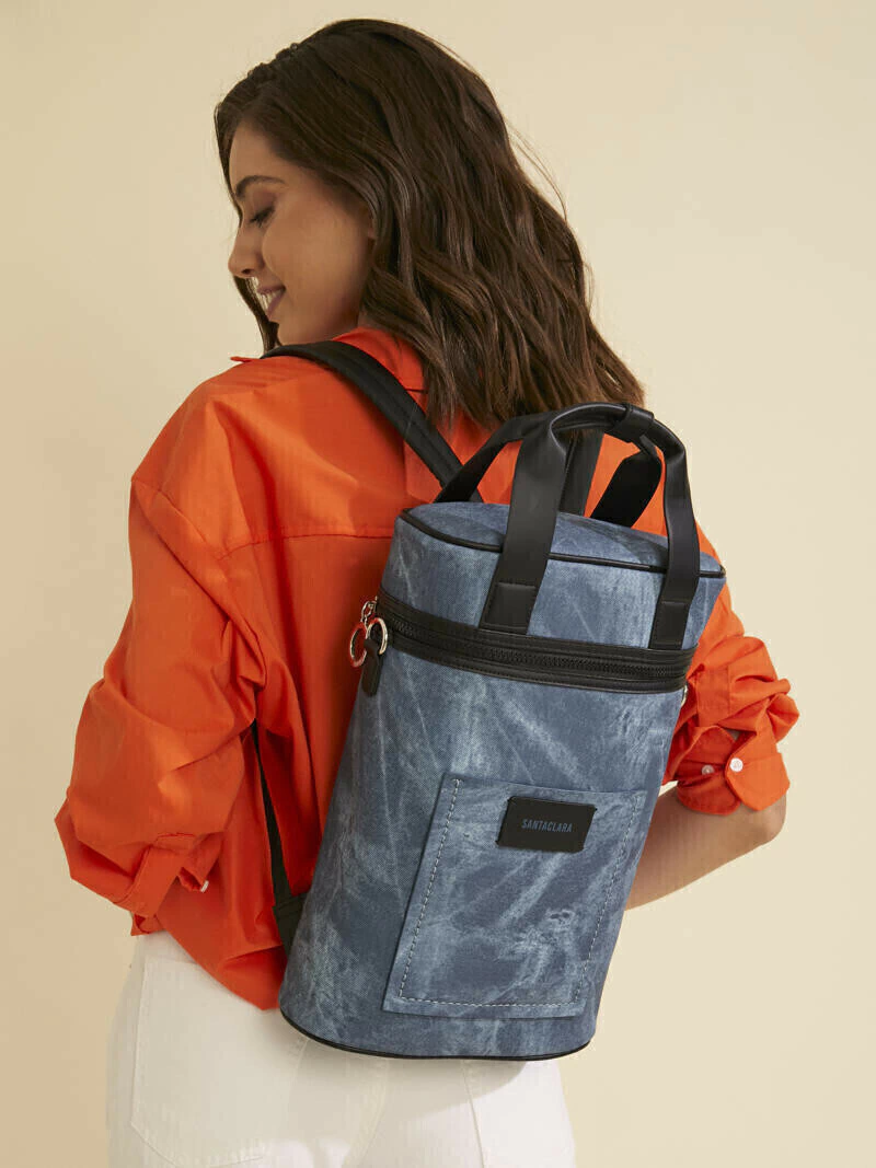 Les presentamos la mochila matero Morena. Está confeccionada en denim engomado.